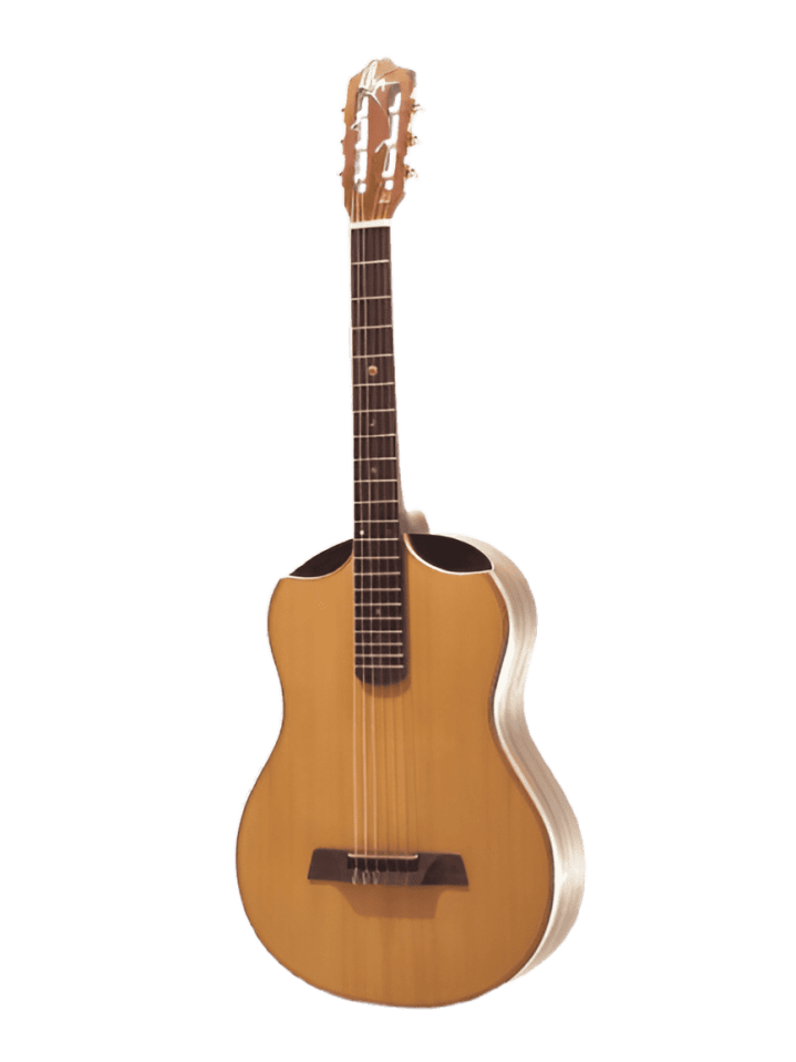 "Vavangue" est une guitare classique avec un diapason de 644 mm. Que les cordes soient montées droitier ou gaucher, sa grande particularité, est ses deux ouïes situées au démanché, à cheval sur le bord de la table et des éclisses. Grâce à son barrage symétrique, les cordes peuvent se monter inversées. Ainsi les droitiers et tous les gauchers joueront de cet instrument en profitant d'un confort de jeu dans les aigus.